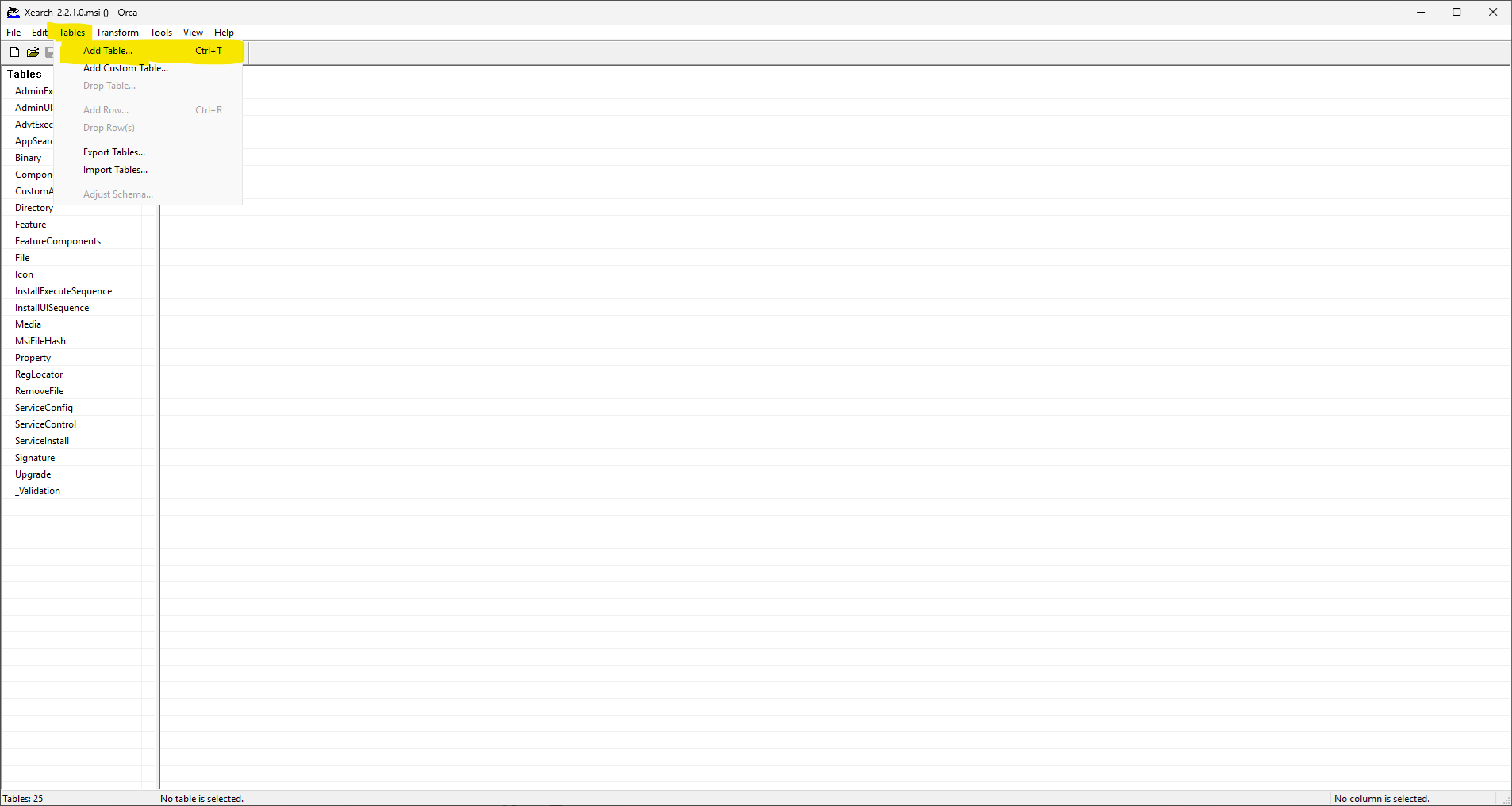 We need a few additional tables beyond what Xearch originally includes. Specifically, we’re adding CreateFolder and MsiLockPermissionsEx.